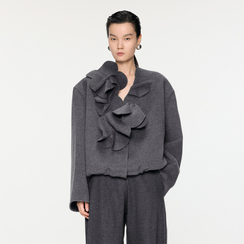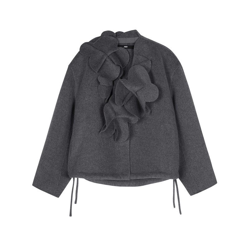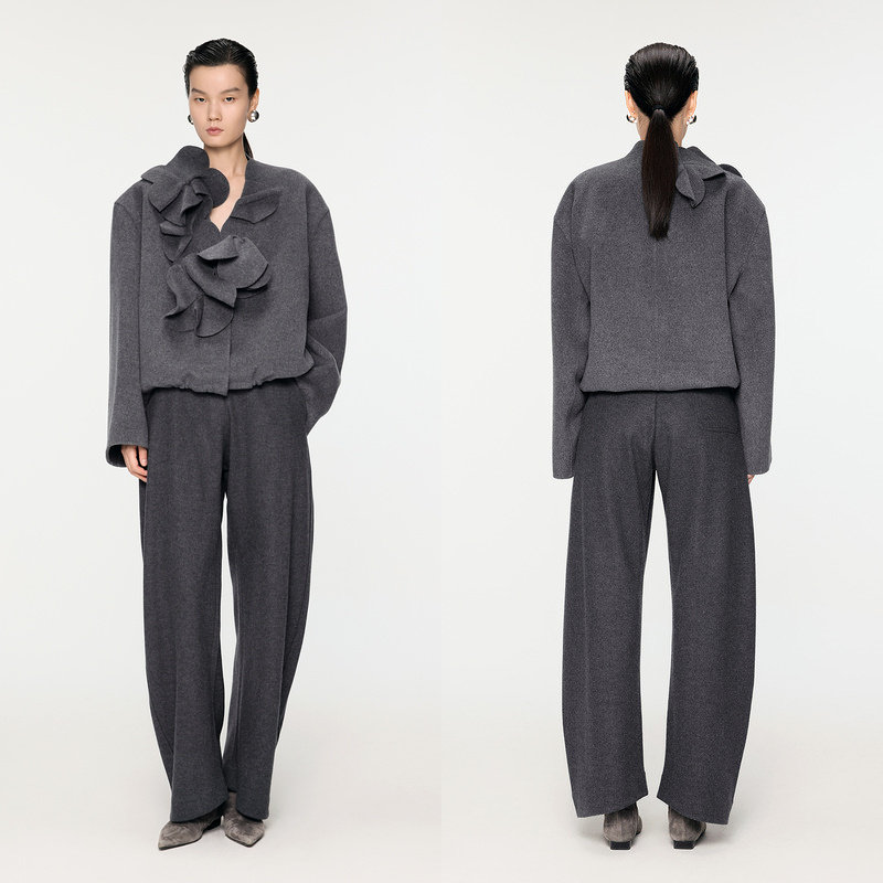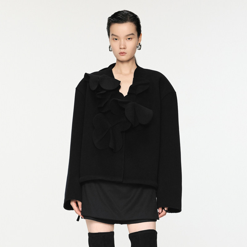 【早秋上新】JNBY/江南布衣秋冬双面毛呢外套短款立体花宽松休闲