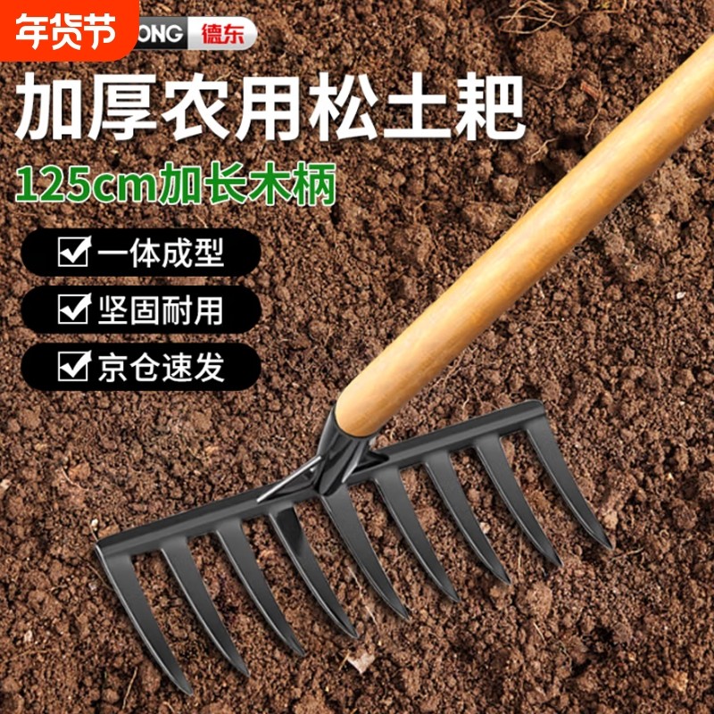 耙子农具农用松土神器九齿钉耙扒草翻地工具草耙子搂草铁耙子锰钢