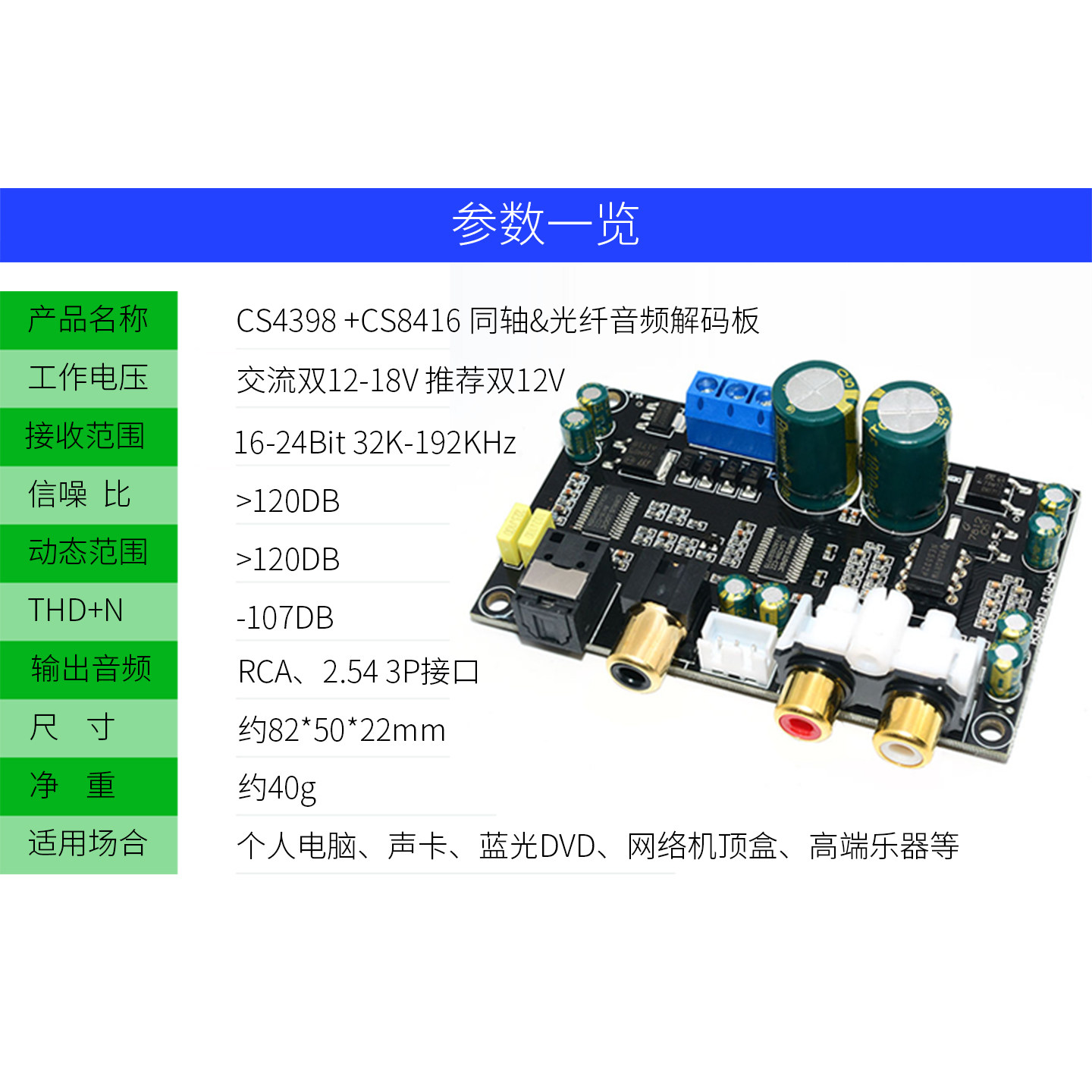 HIFI发烧级高保真CS8416CS4398芯片24BIT192KHz同轴光纤DAC解码板