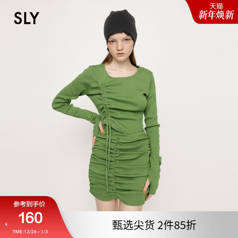 SLY 冬季新品欧美风抽褶假两件包臀针织连衣裙038GAL83-4040