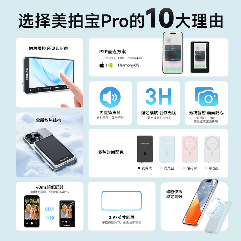 声刻美拍宝M4PRO手机后置磁吸自拍显示屏镜触屏变焦投屏器远程控制拍照高清自拍神器2025新款适用苹果安卓