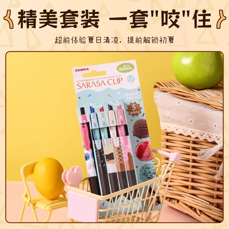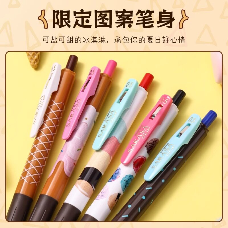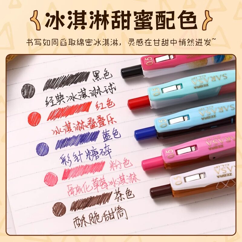 日本ZEBRA斑马JJ15冰淇淋限定中性笔0.5mm按动水笔夏季甜蜜冰激凌学生用高颜值JJ15按动按压式甜品彩色