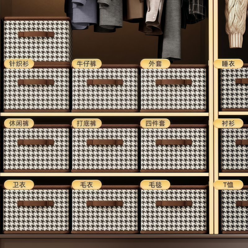 衣服收纳箱千鸟格家用衣柜分层整理收纳神器放衣物布艺折叠收纳筐