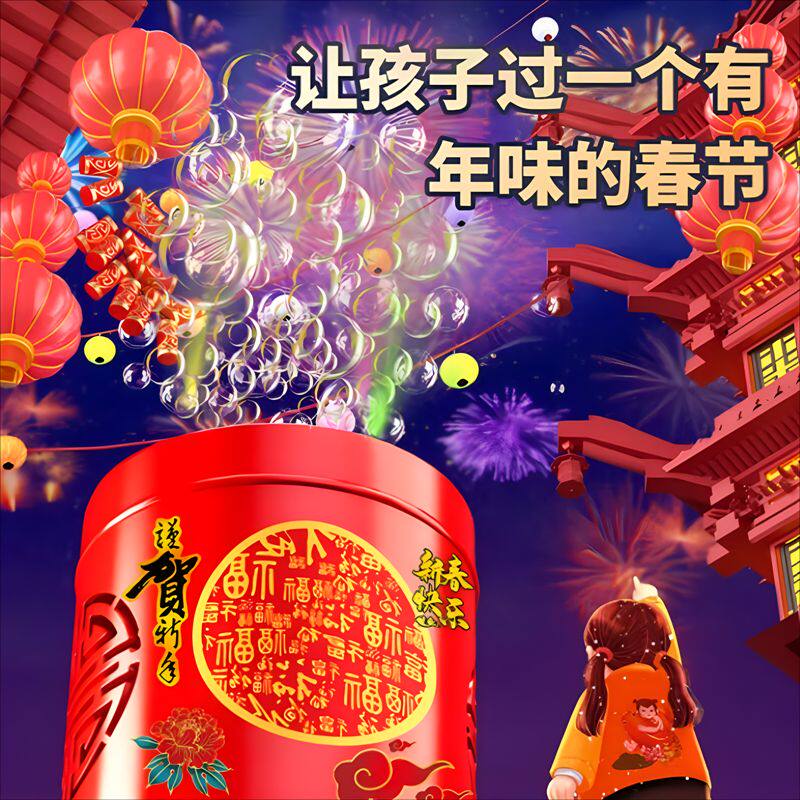 乐乐鱼2026新款电动新年烟花泡泡机醒舞狮灯笼儿童玩具手持加特林