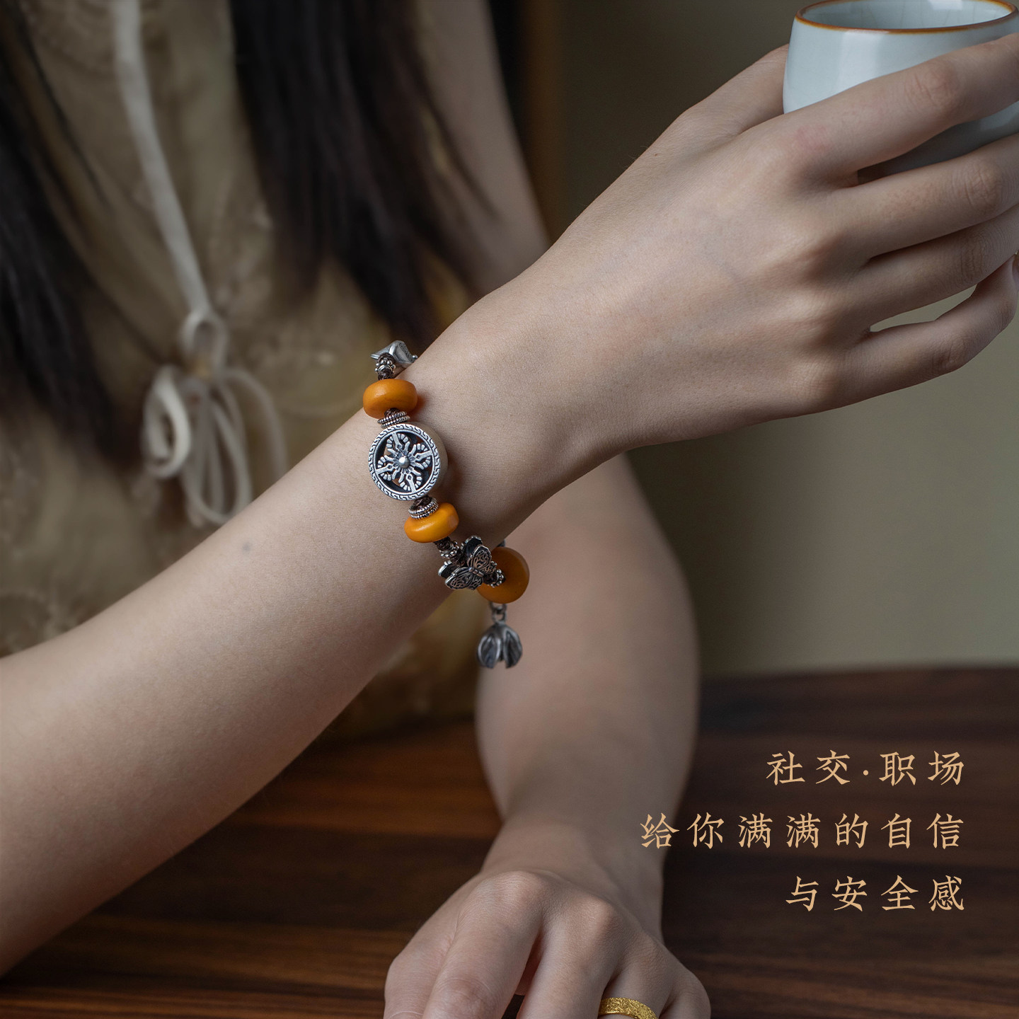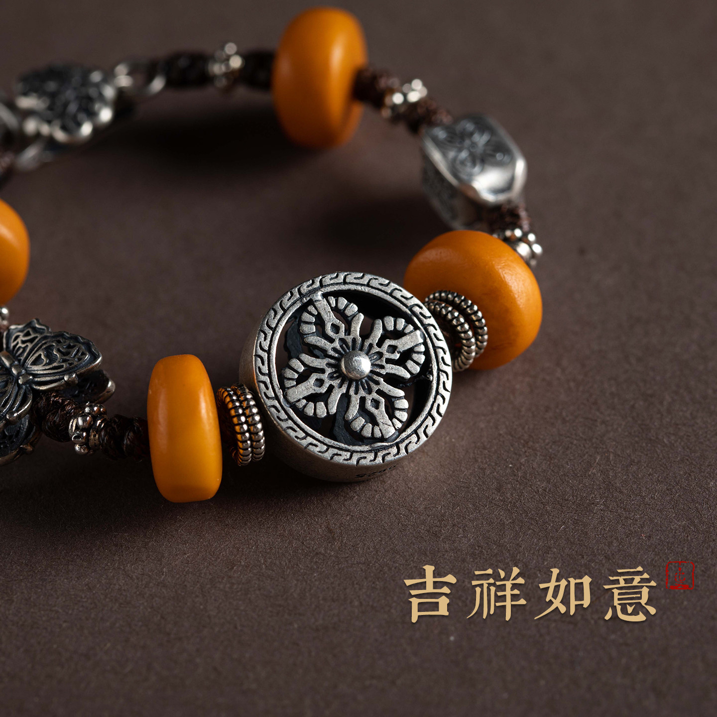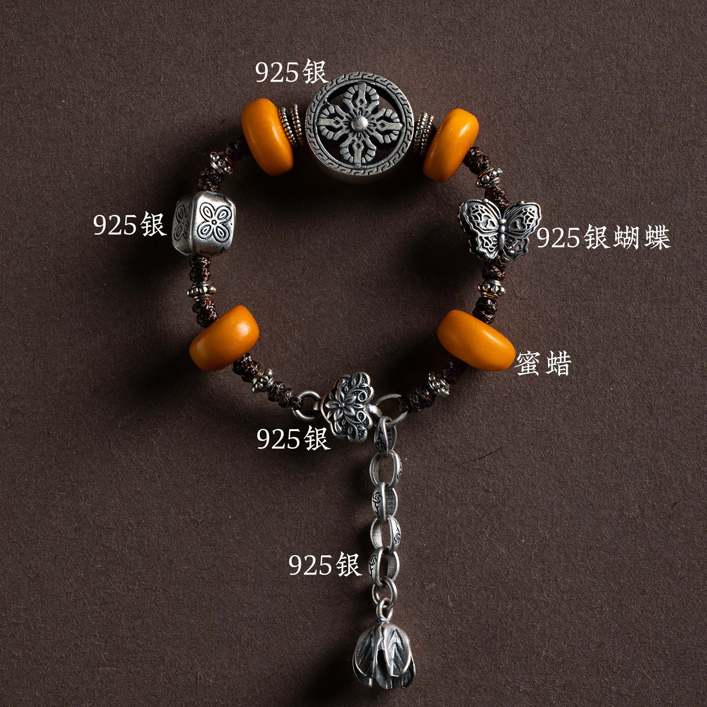 【设计师款】藏式纯银手串女蜜蜡金刚杵蝴蝶手链民族风手饰情侣