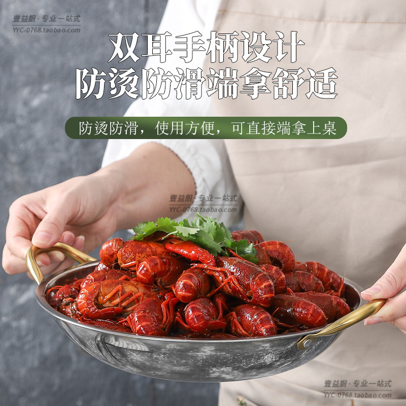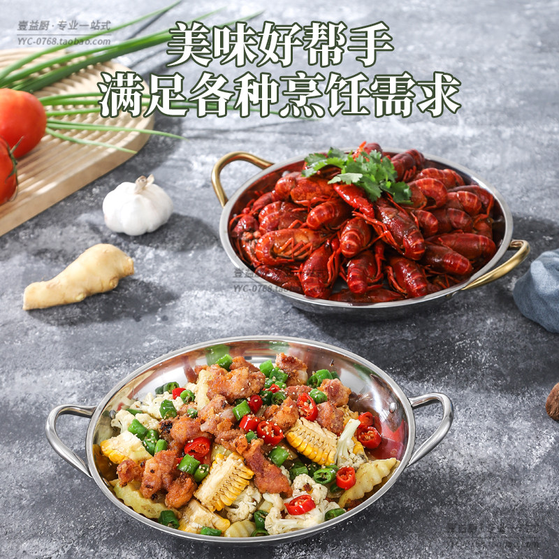 商用加厚不锈钢干锅锅仔餐饮专用小火锅圆底平底麻辣香锅锅具双耳