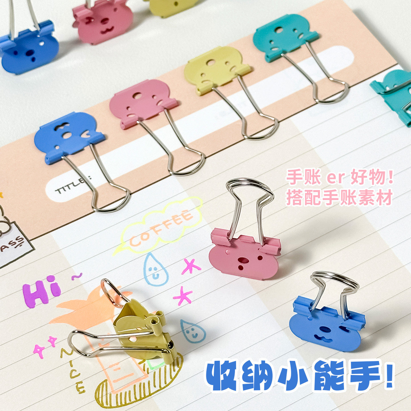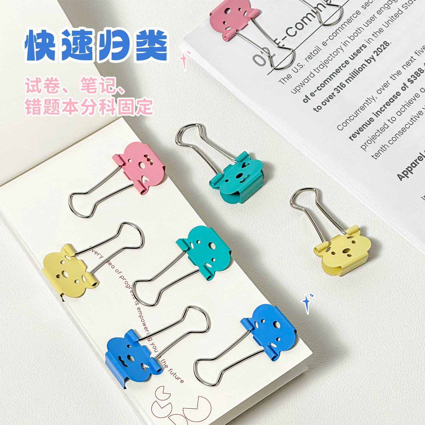 高颜值卡通小熊长尾夹彩色办公文具票据夹可爱学生用品办公文具夹