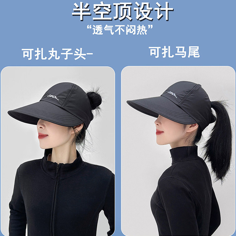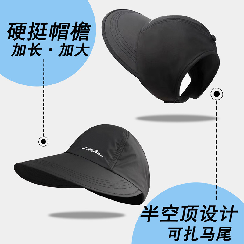 加大帽檐遮阳防晒帽女户外棒球帽男速干鸭舌帽空顶太阳帽可扎马尾
