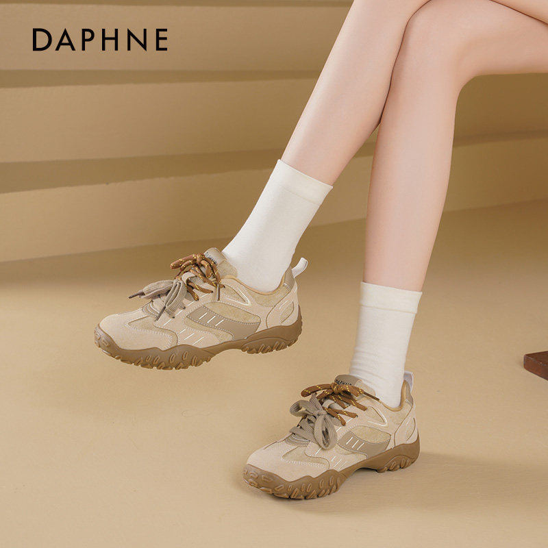 达芙妮德训鞋女款2026新款秋季双鞋带百搭女鞋厚底休闲运动鞋子女