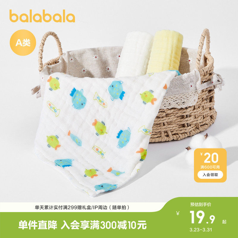 巴拉巴拉新生儿小方巾婴儿用品初生宝宝纯棉舒适简约清新三件装萌