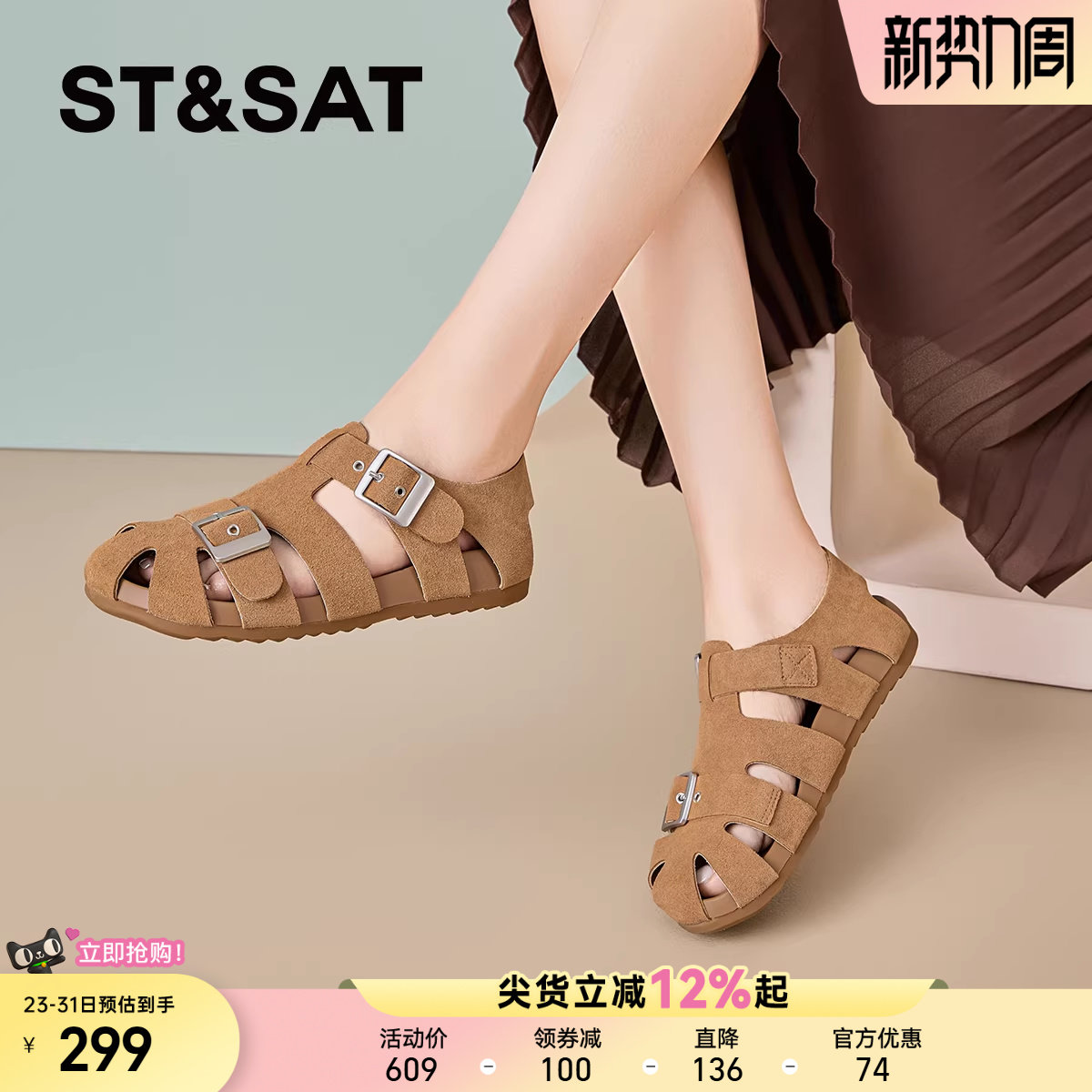 星期六包头凉鞋女款春季新款皮带搭扣休闲凉鞋软底舒适外穿凉鞋爆