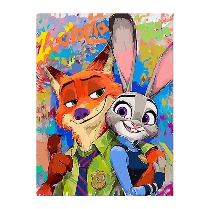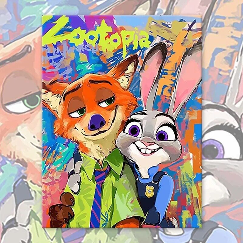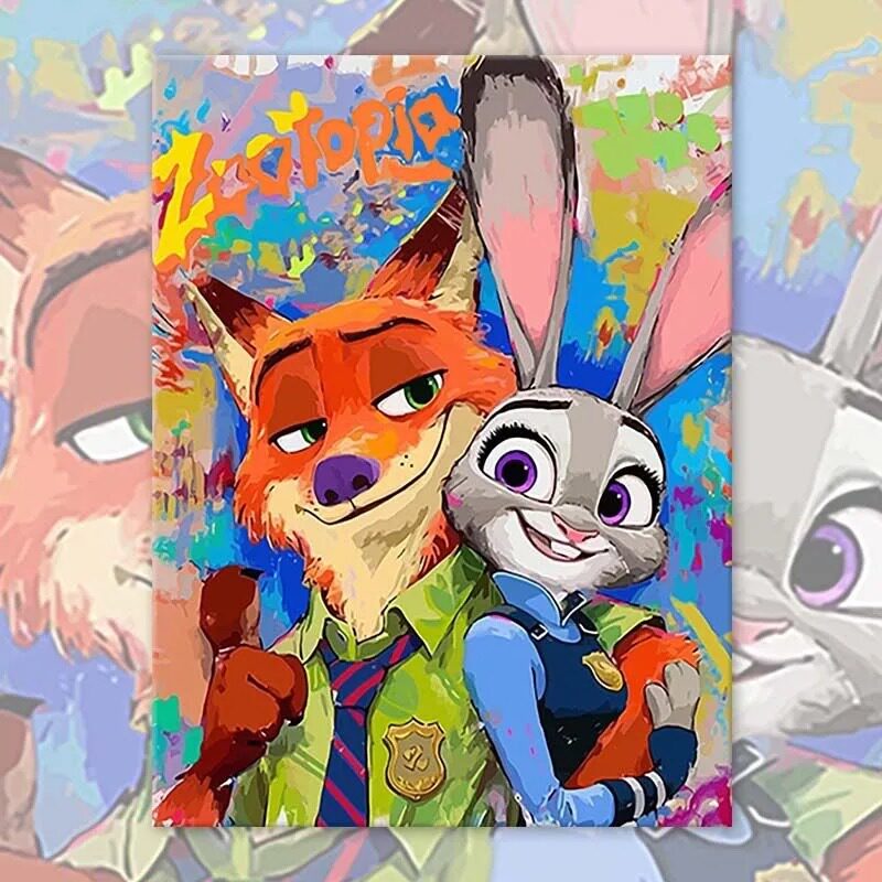 疯狂动物城DIY数字油画 卡通手绘填色油彩画解闷手工涂鸦装饰挂画