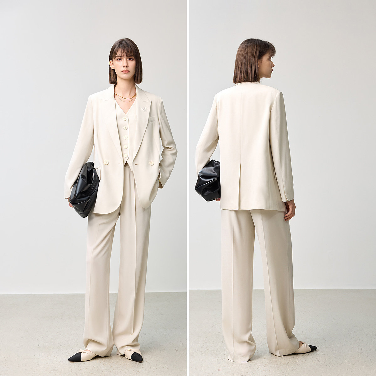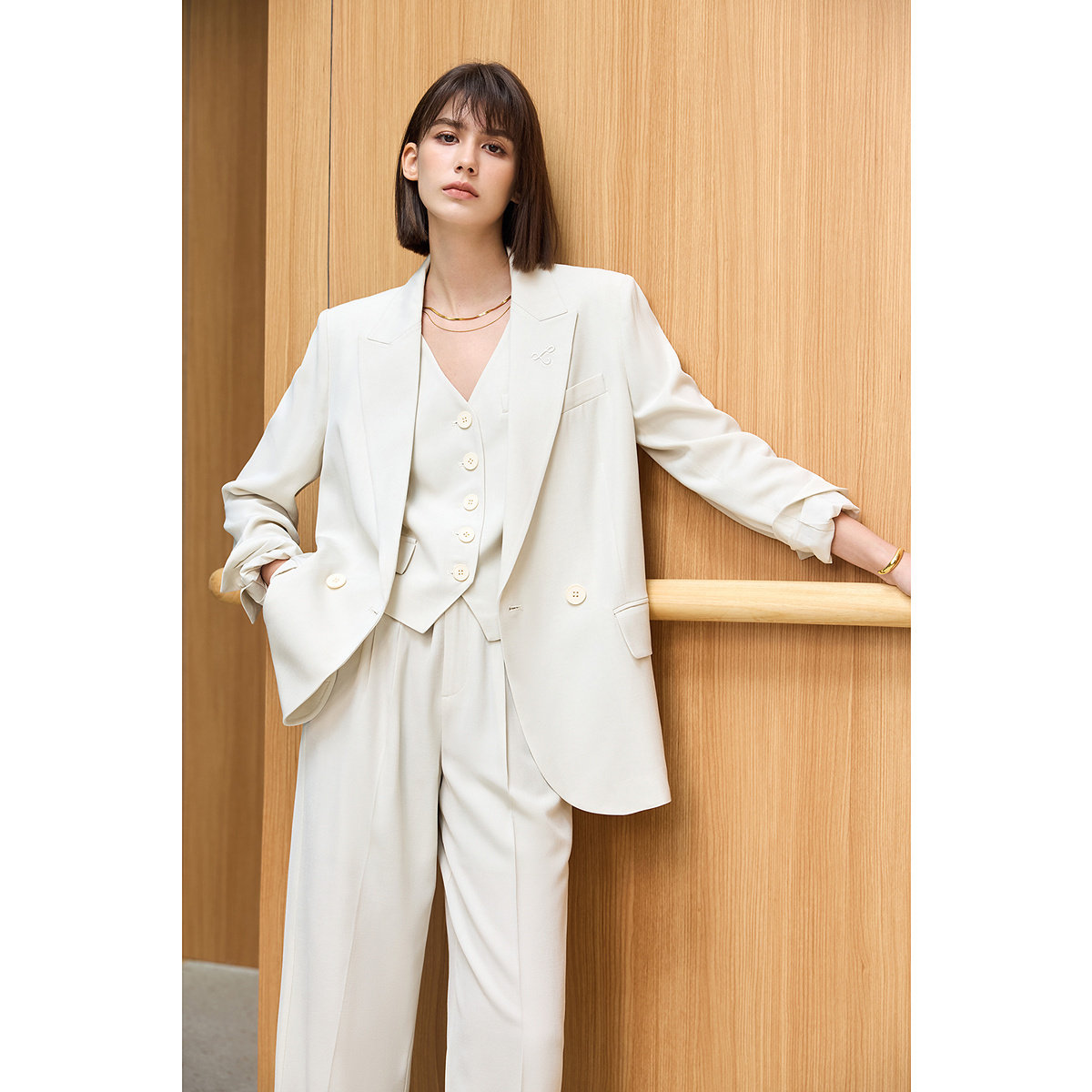 LILY醋酸混纺职场通勤休闲高级感套装米色西装外套2025新款女装
