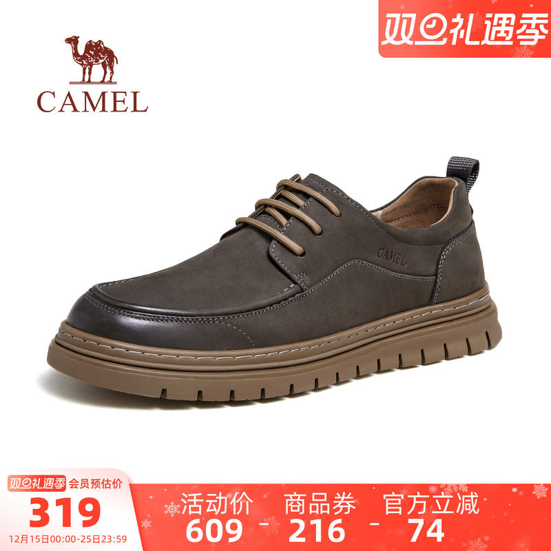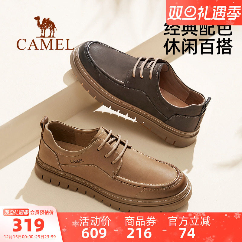 骆驼男鞋2025秋季新款牛皮复古英伦低帮系带商务工装休闲皮鞋男士