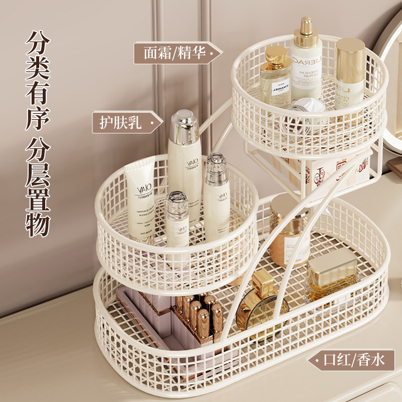 桌面置物架家用化妆品收纳盒梳妆台多巴胺免打孔多层分类收纳神器