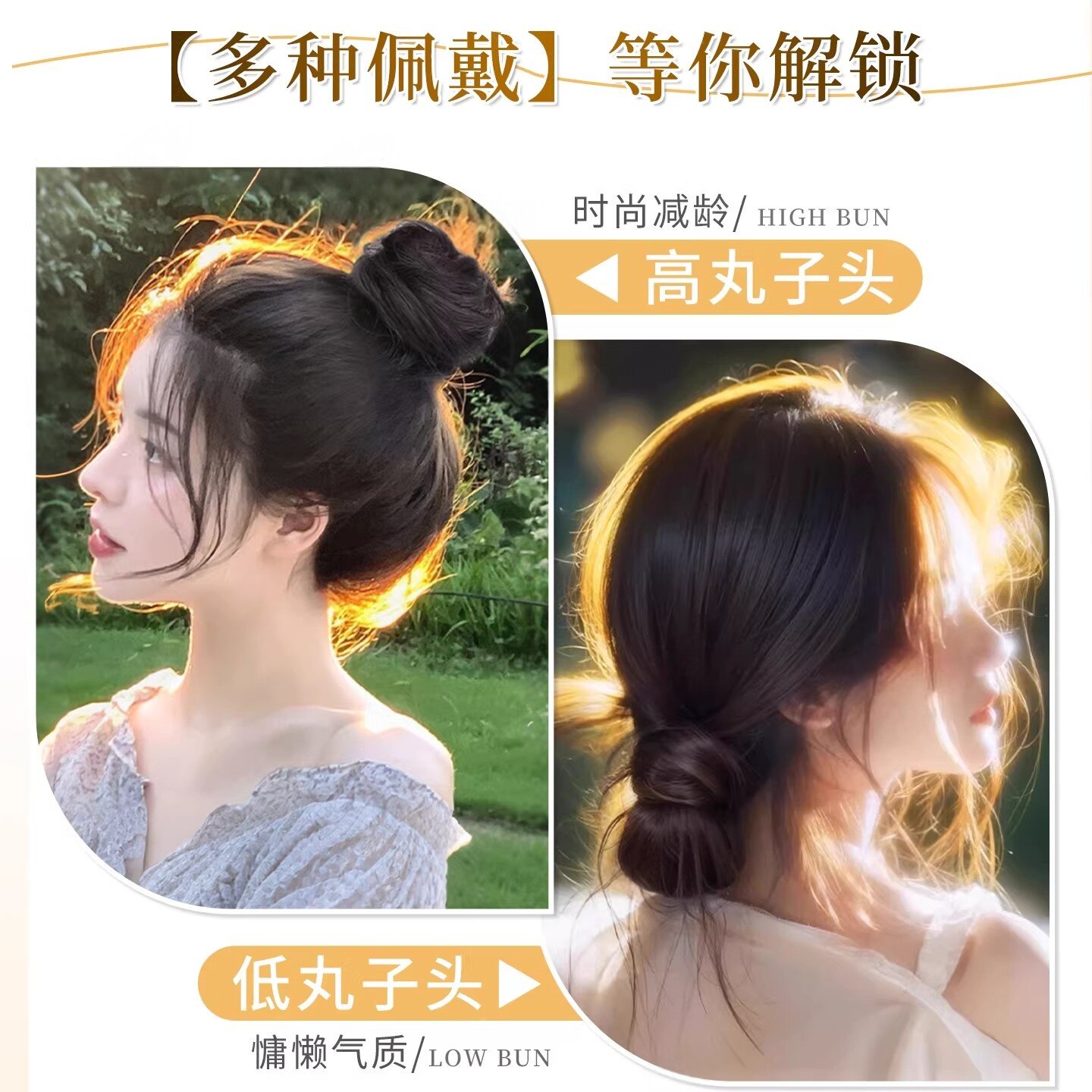 低扎丸子头假发鸡毛头抓夹盘发发包慵懒感造型头饰自然蓬松后脑勺
