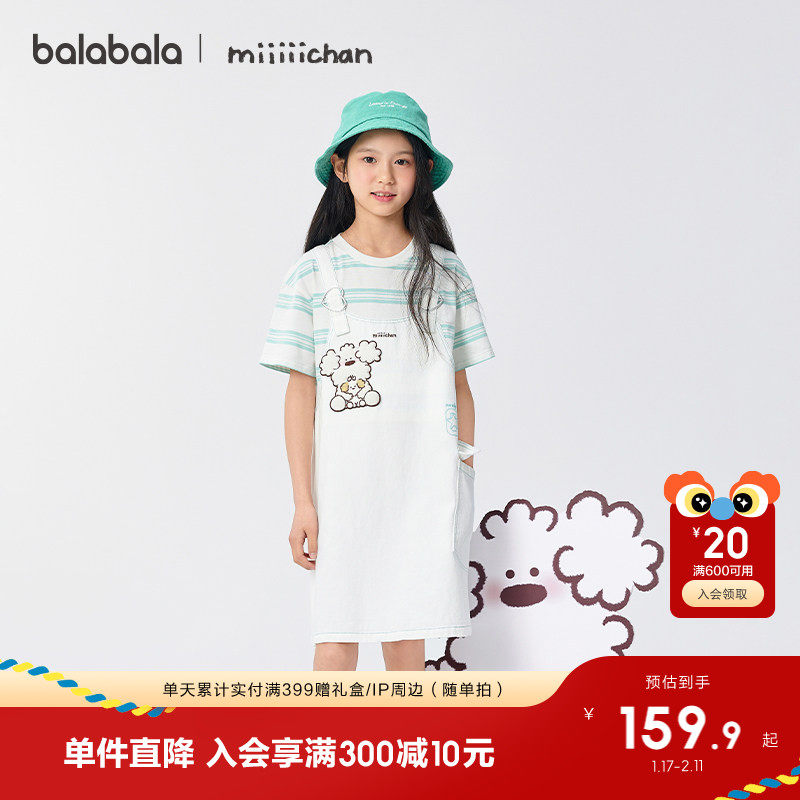【balaOne】巴拉巴拉童装女童连衣裙2025新款春装网纱裙甜美洋气