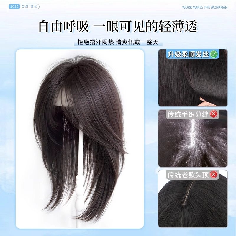 不用戴发网一片式女顶量仿真发假发锁骨发全头套刘海长发蓬松短发