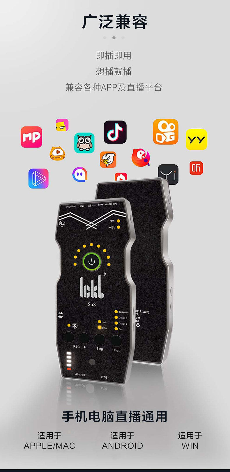 ickb SO8声卡第五代直播专用手机声卡唱歌设备套装主播麦克风套餐