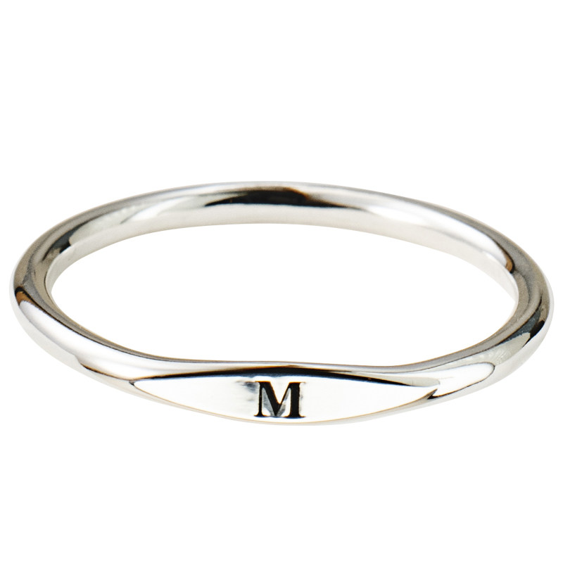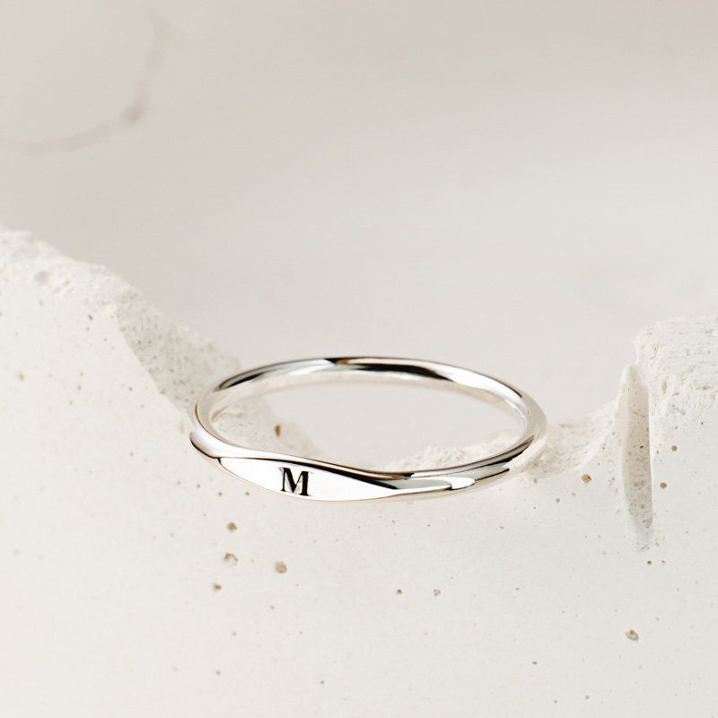S925纯银光面菱形字母刻字定制戒指女 简约小众时尚个性尾戒关节