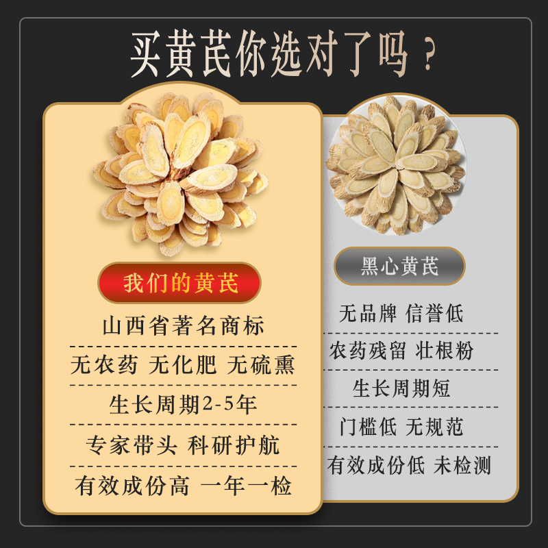 黄芪片特级野生山西正北芪片配当归党参枸杞泡茶水煮粥无熏硫