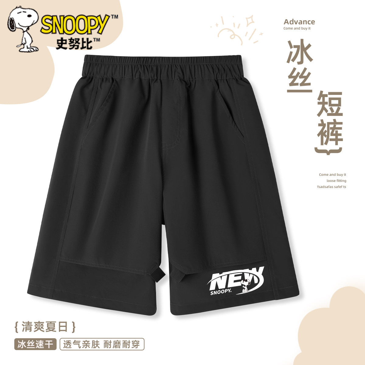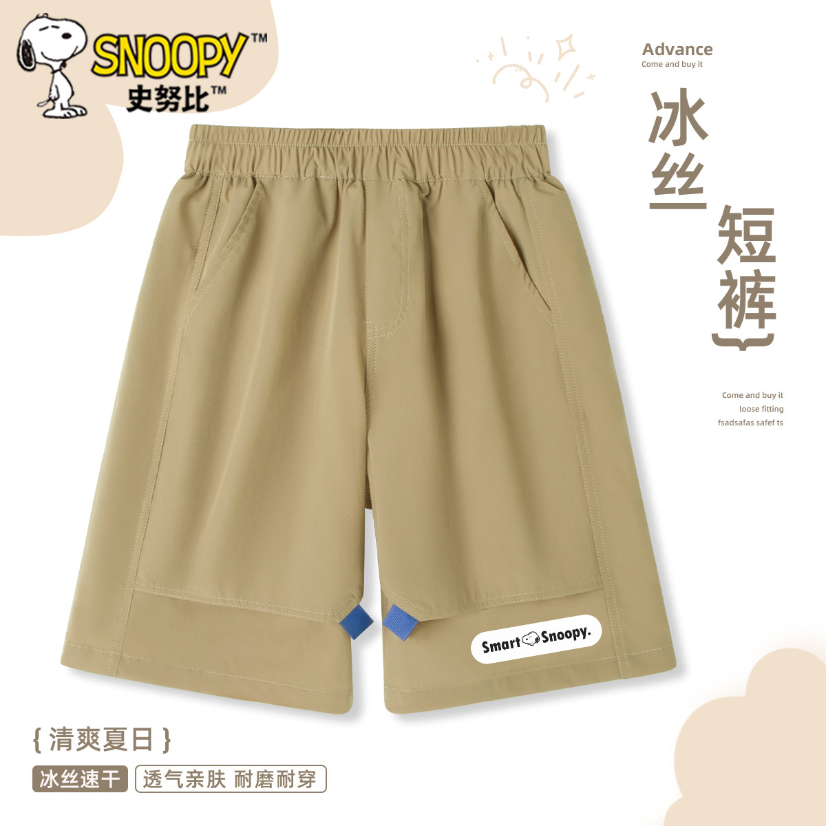 史努比男童卡其色短裤夏季薄款男孩速干七分裤男大童中裤儿童裤子
