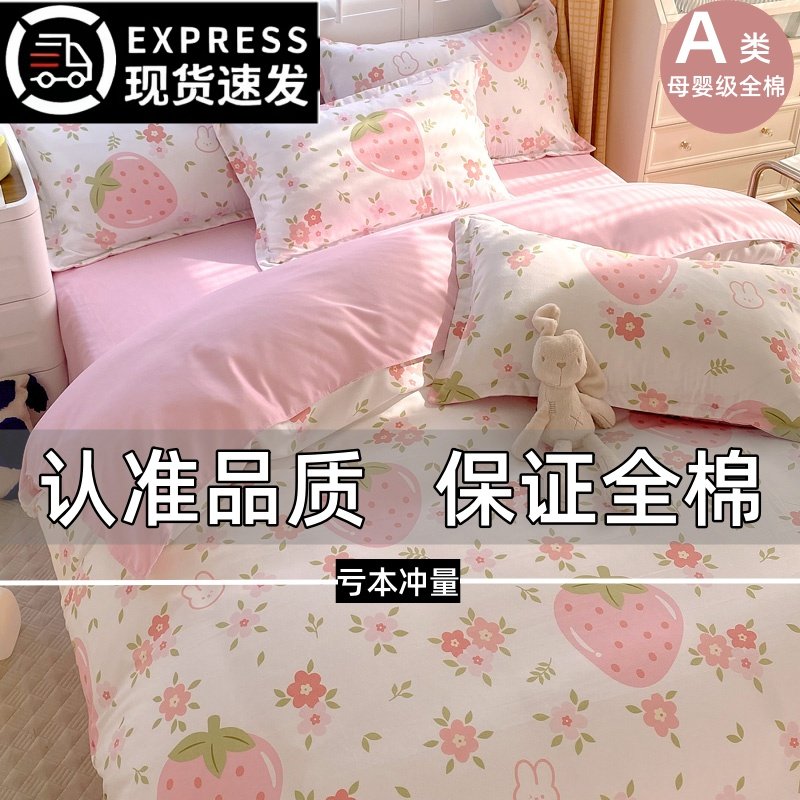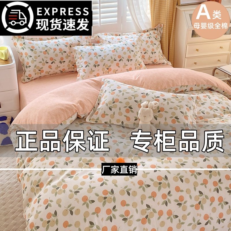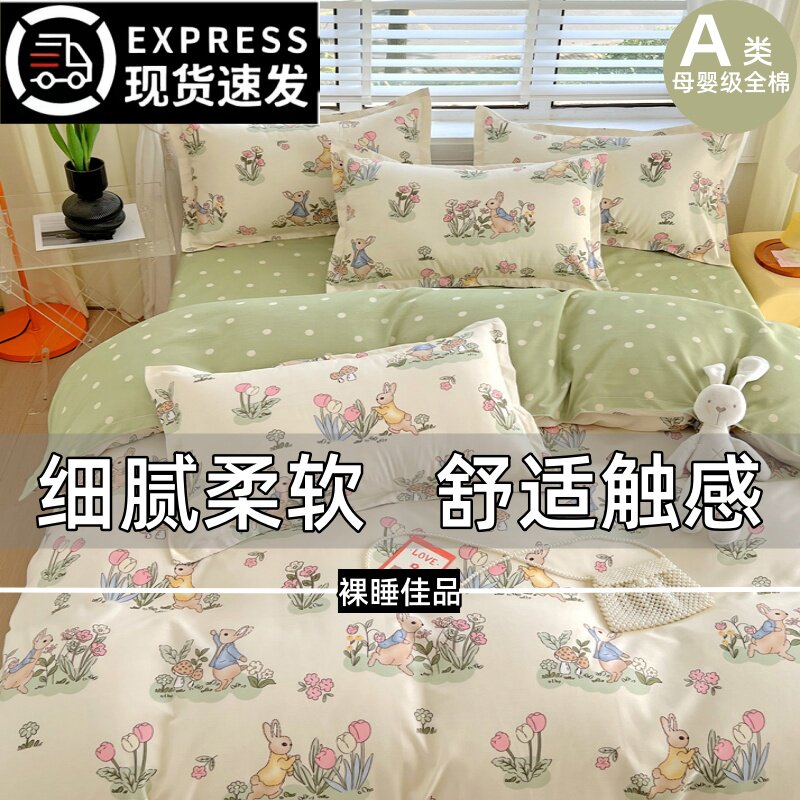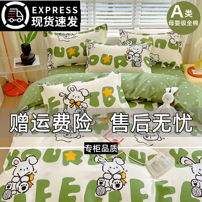 2024新款A类全棉四件套100纯棉被套床单床上用亲肤学生宿舍三件套