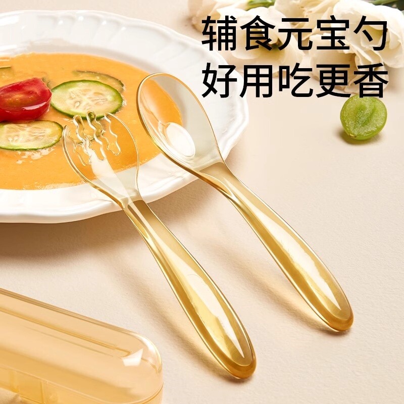 PPSU勺子婴儿吃饭专用宝宝辅食6个月以上儿童喂饭训练勺元宝水果