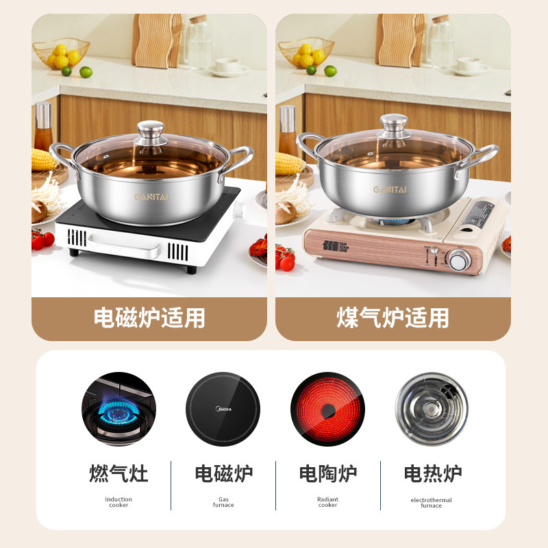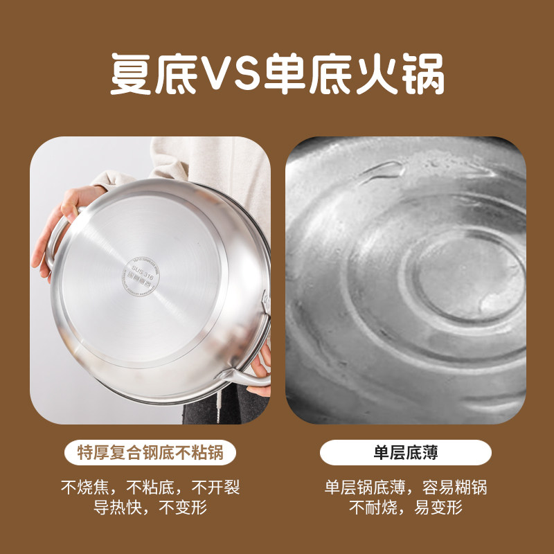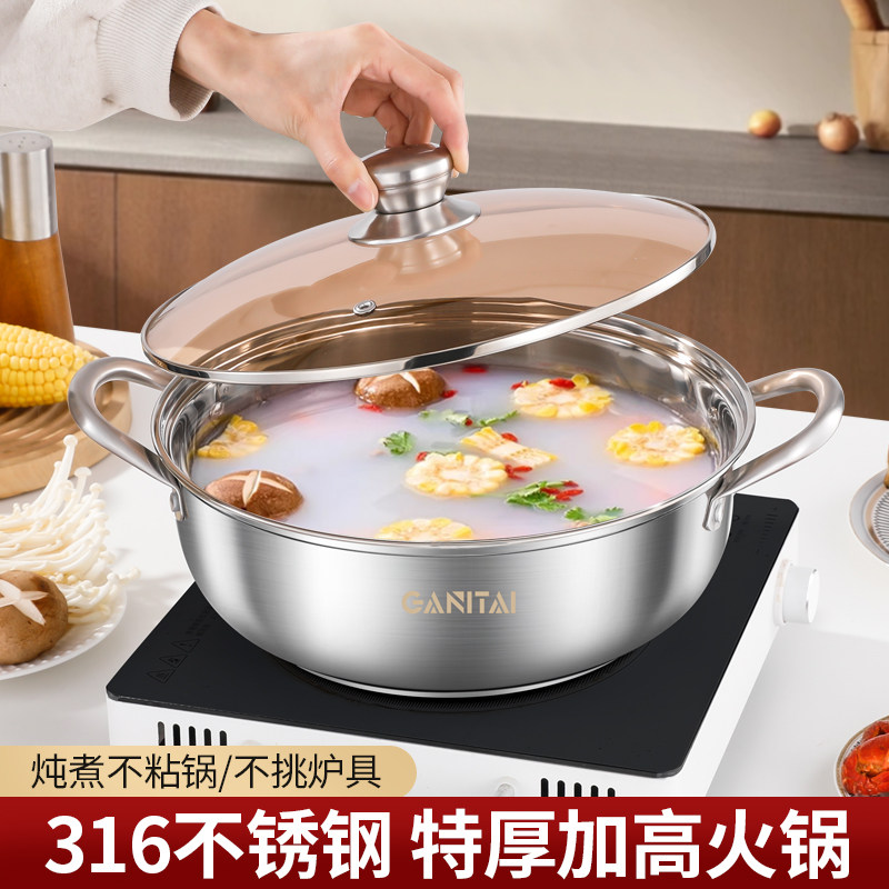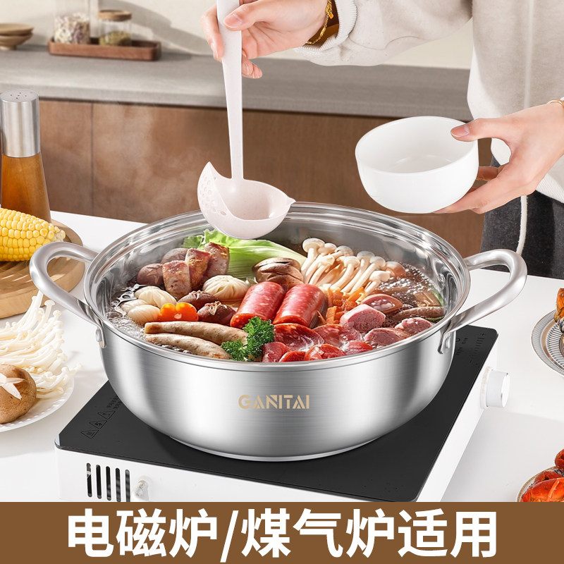 德国食品级不锈钢加厚火锅锅具家用煮锅电磁炉专用清汤火锅盆