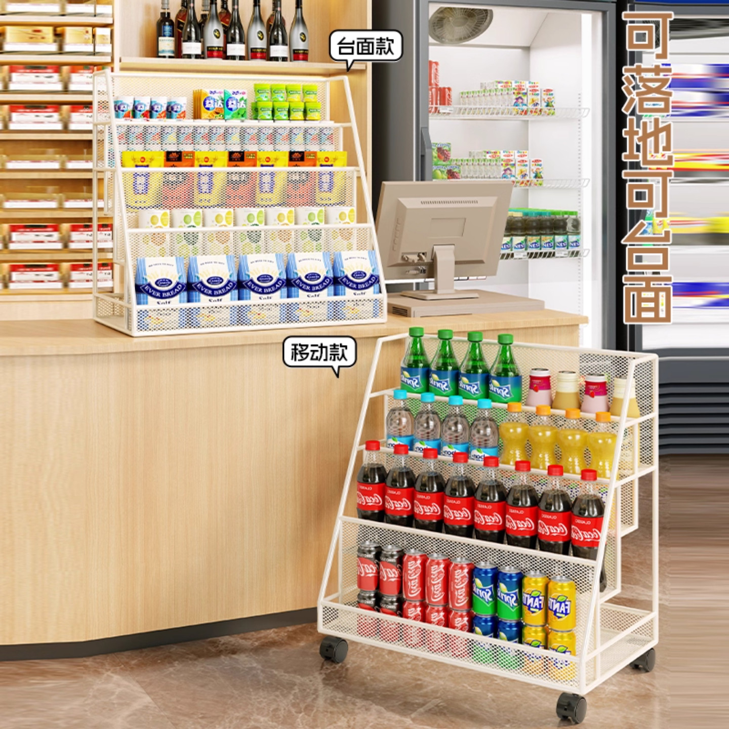 零食置物架桌面放饮料多层收纳架可移动超市货架收银台展示架阶梯