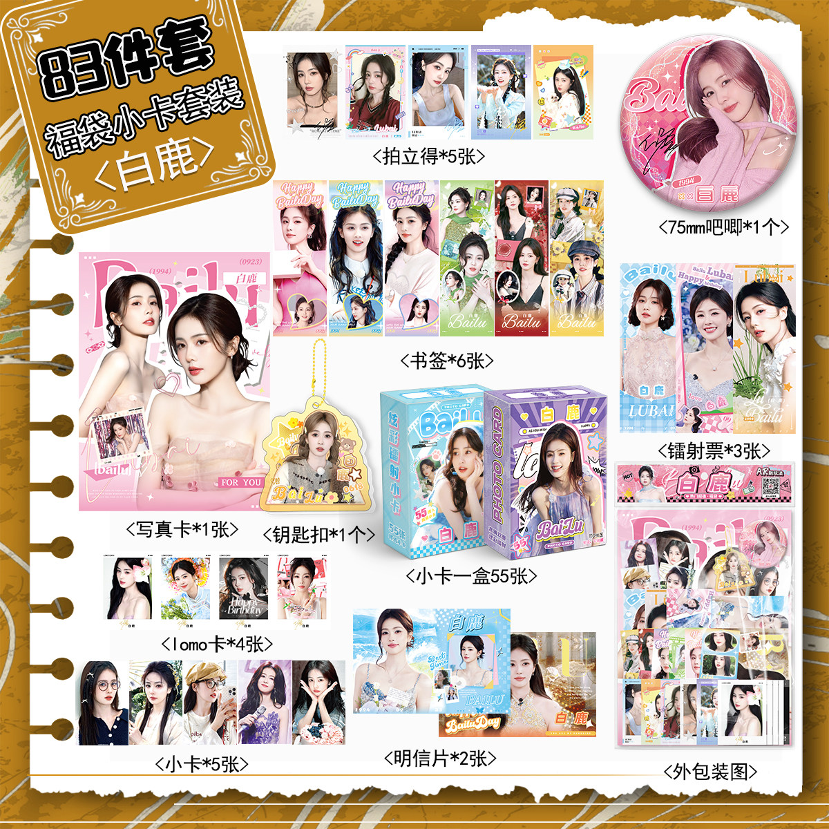 白鹿周边宠粉福利84套装摩天轮立牌拍立得小卡明信片写真书签吧唧