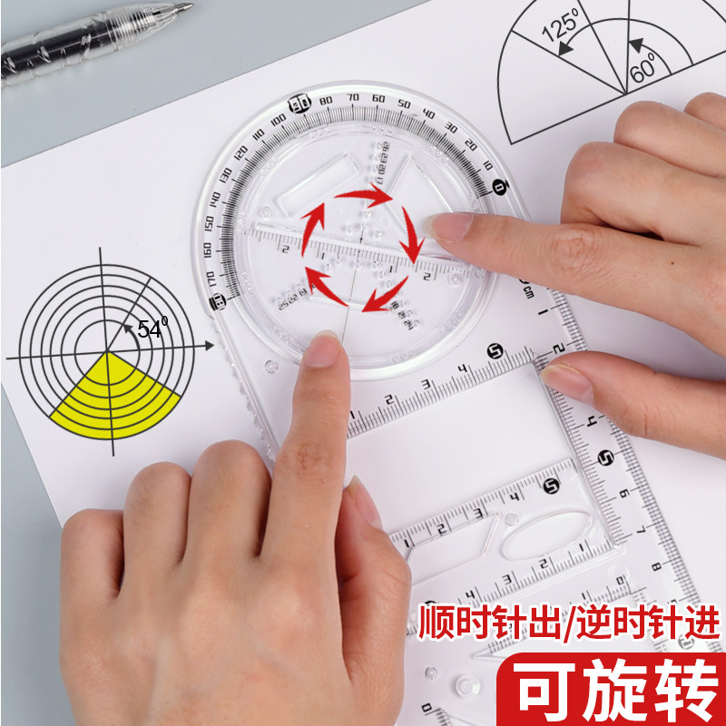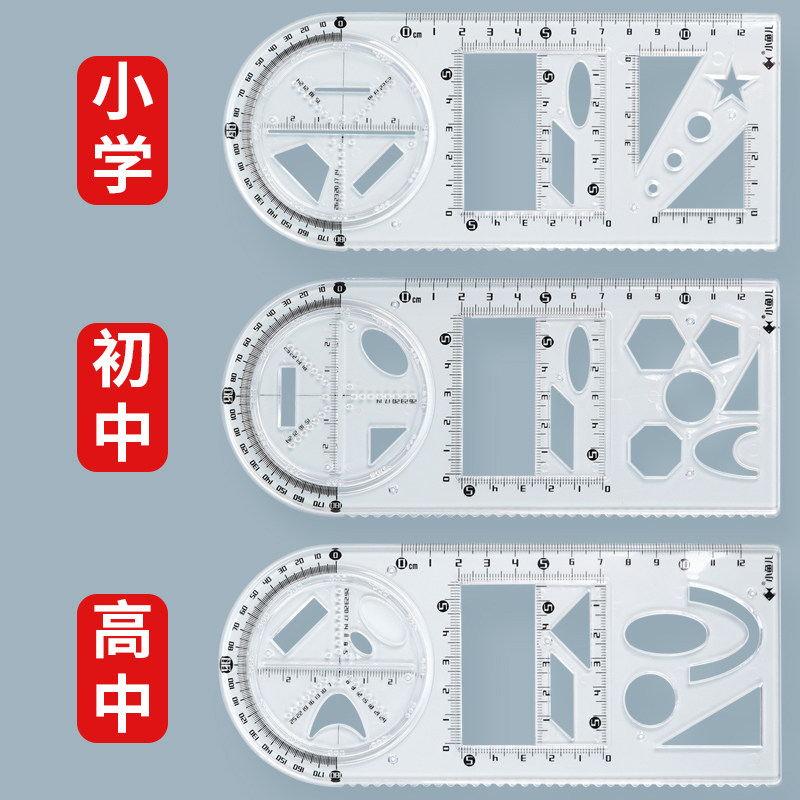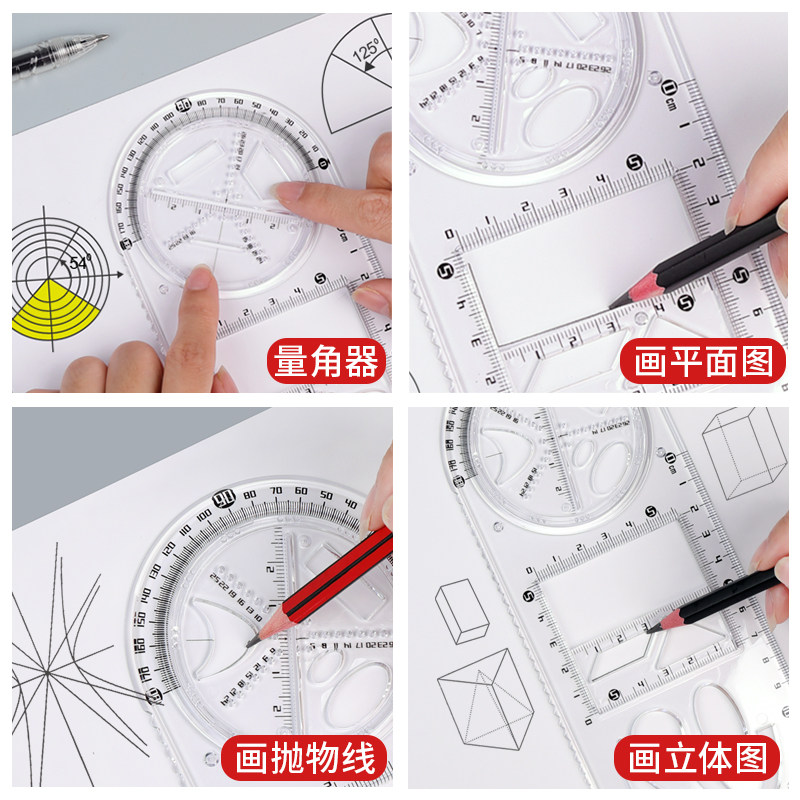多功能几何绘图尺子学生专用画画神器高考小学生初中高中函数图形尺万能尺活动角工具模板数学教具直尺三角尺