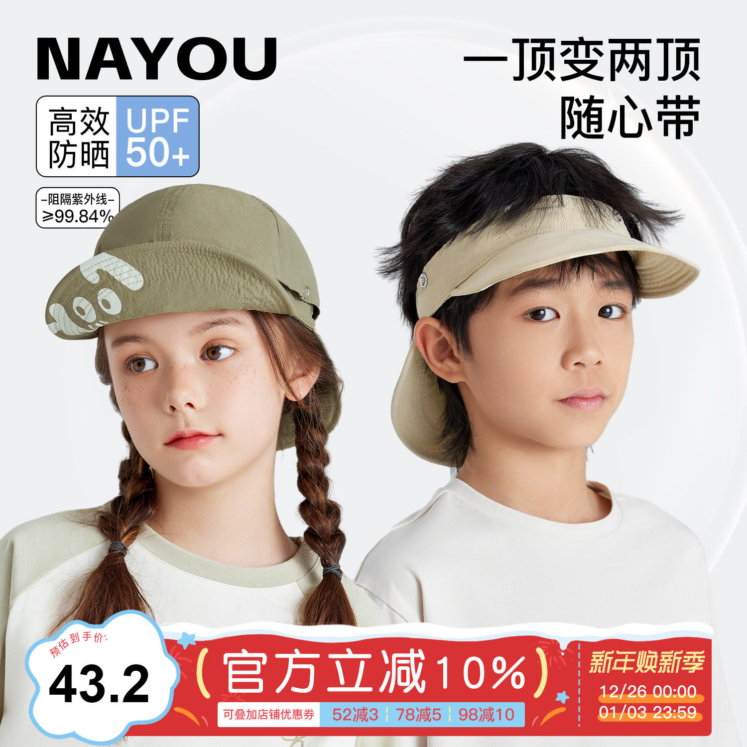 纳柚儿童帽子春秋遮阳帽男孩帽子女童空顶帽中大童帽儿童防晒帽