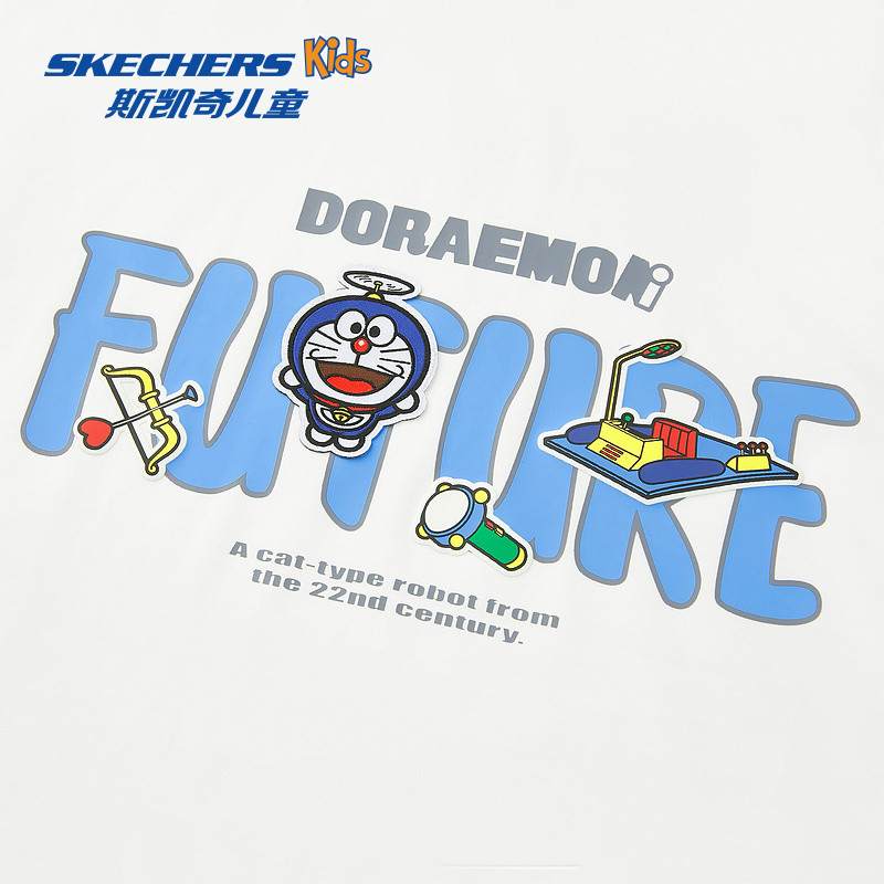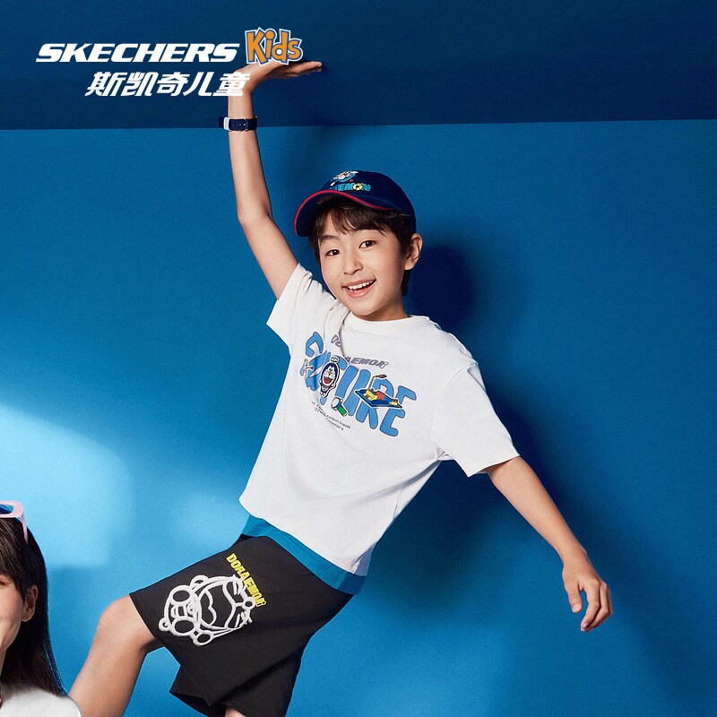 【哆啦A梦】Skechers斯凯奇男童夏季款卡通印花柔软舒适短袖T恤