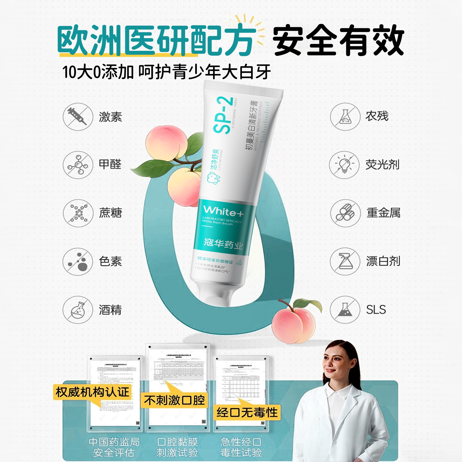 松达儿童防蛀牙膏3-6-12岁宝宝牙膏防蛀牙换牙期50g/支官旗正品