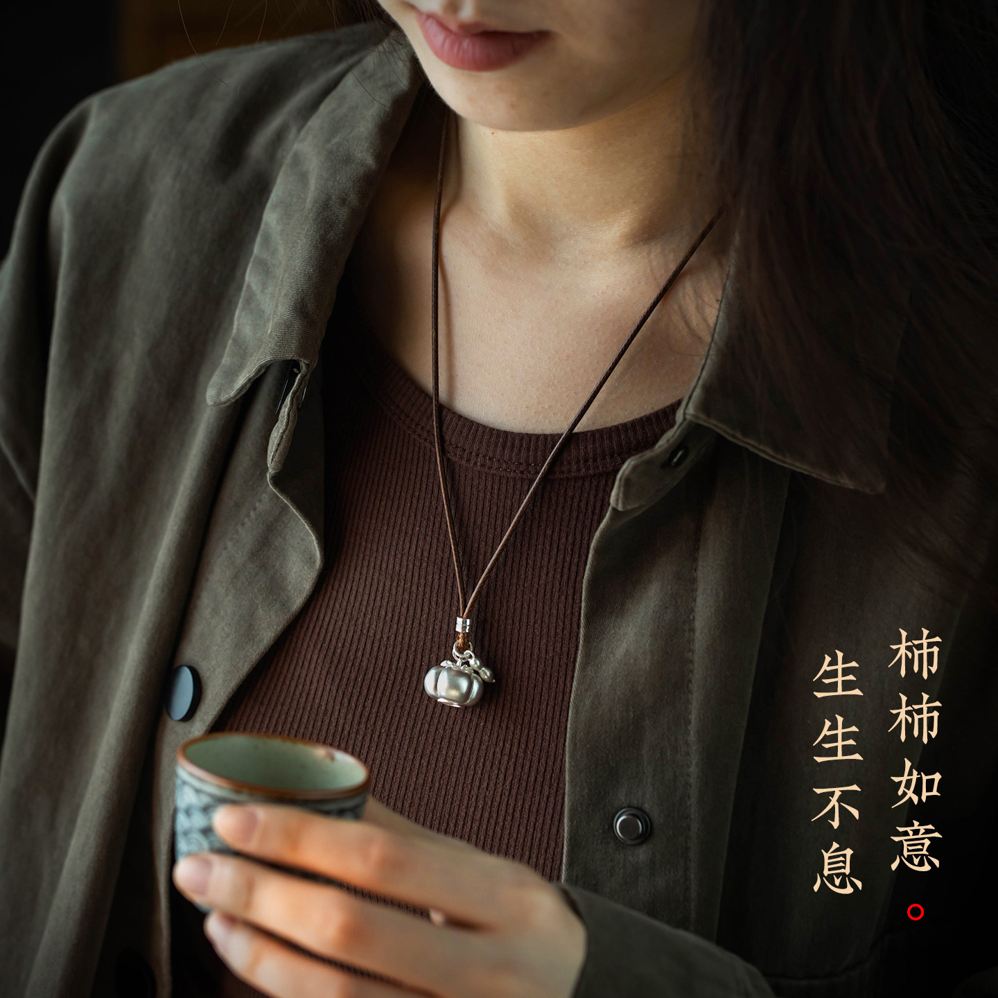 大善堂保真足银999新中式小柿子吊坠好事发生纯银项链精致女生礼