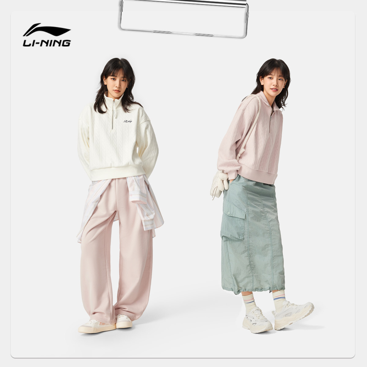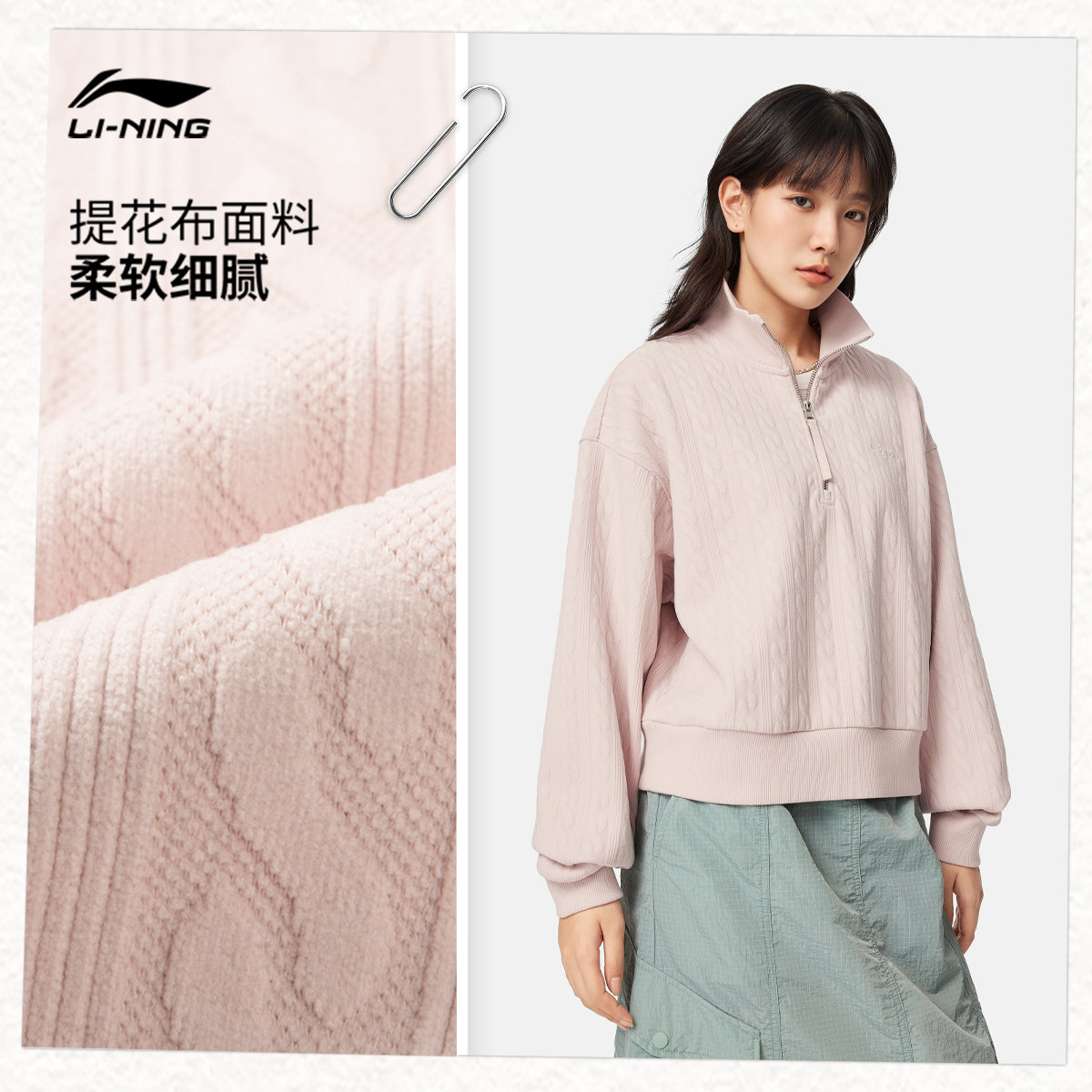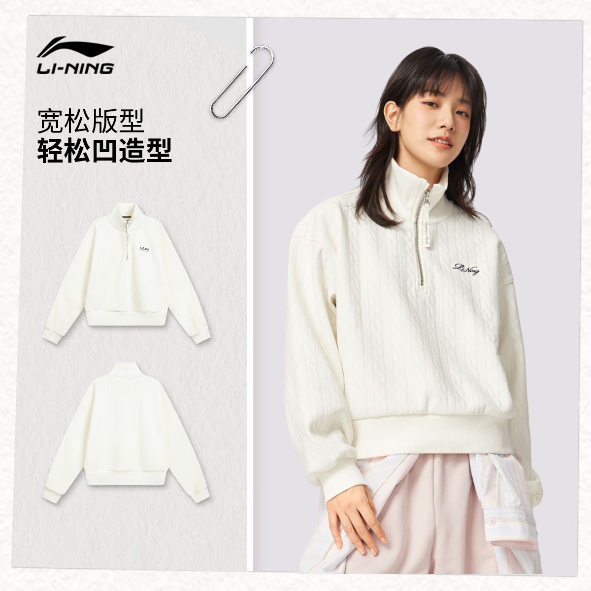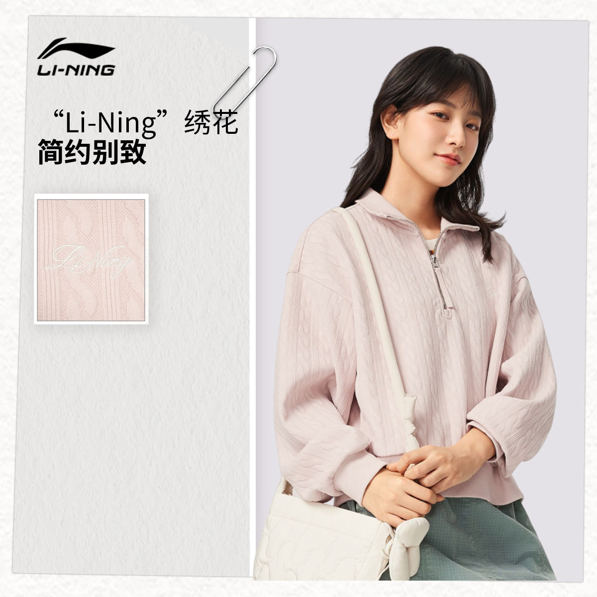 李宁半拉链卫衣女士春季2026新款刺绣长袖休闲翻领宽松针织运动服