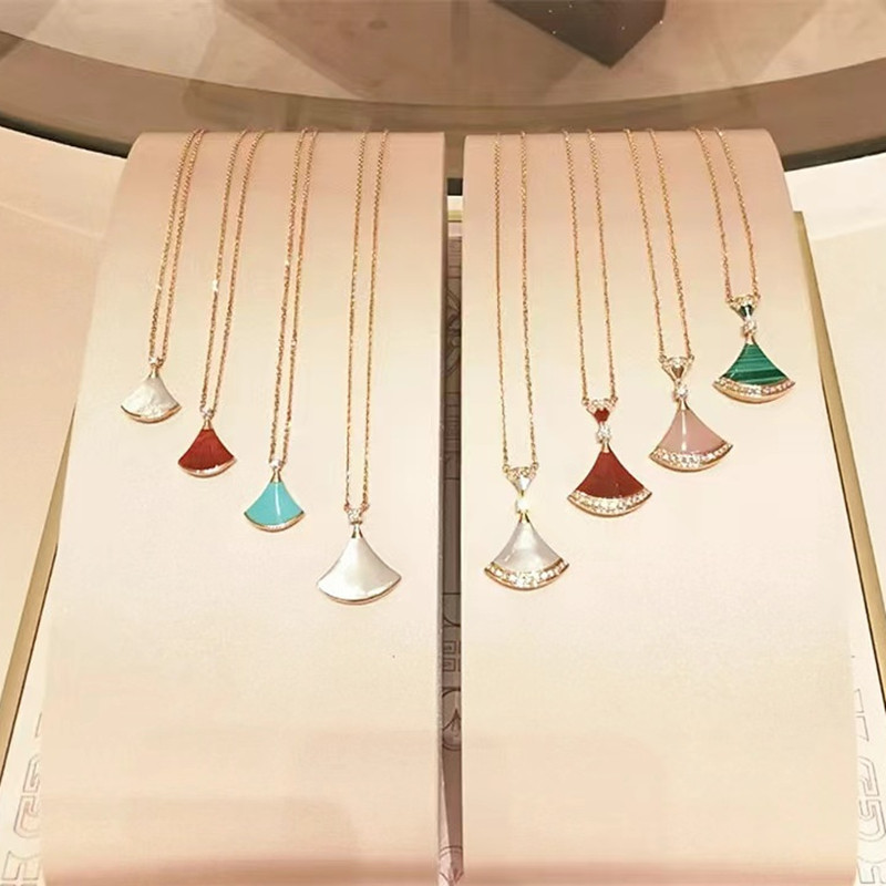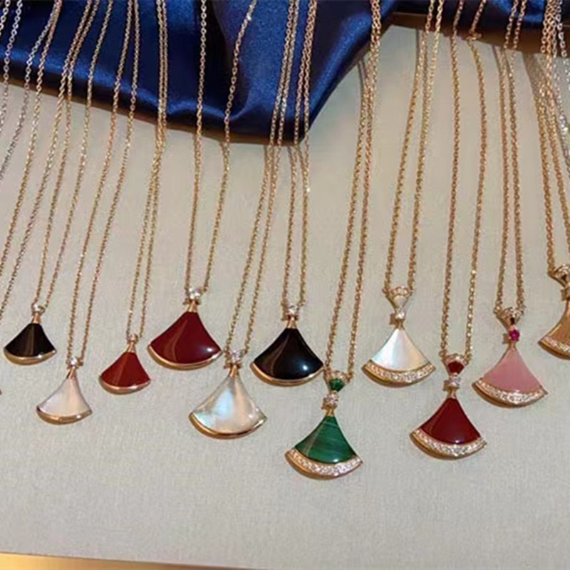 高版本小裙子项链女V金玫瑰金天然白贝母红玛瑙扇形锁骨链不掉色