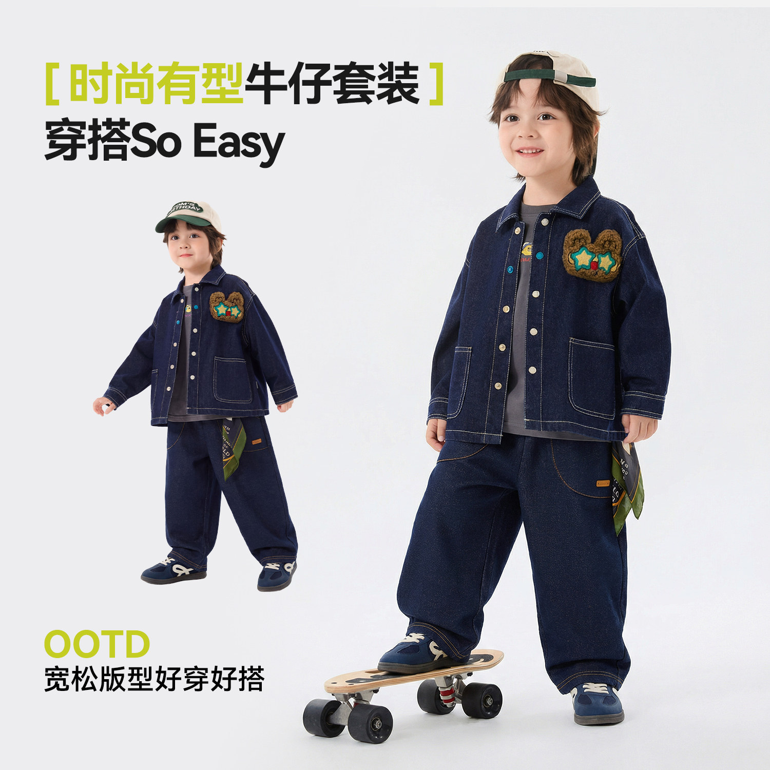 【软牛仔】嘟嘟家男童套装春季儿童牛仔外套裤子女童春装宝宝童装