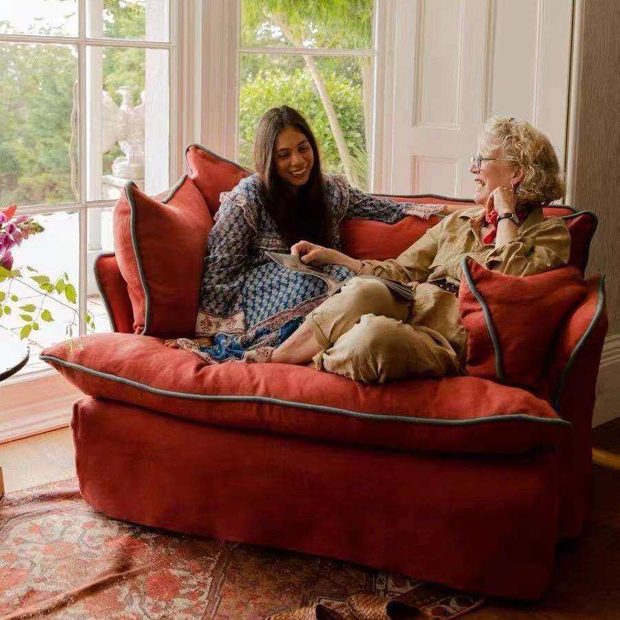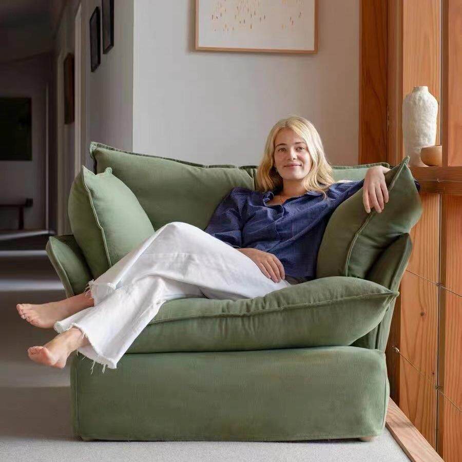 法式现代简约轻奢北欧客厅民宿彩色单人沙发复古多巴胺布艺沙发