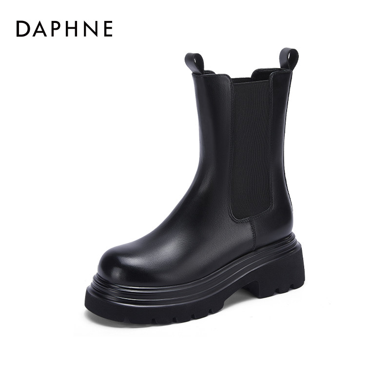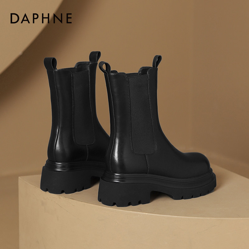达芙妮黑色切尔西靴女2026新款女鞋厚底烟筒靴子小个子马丁靴子女