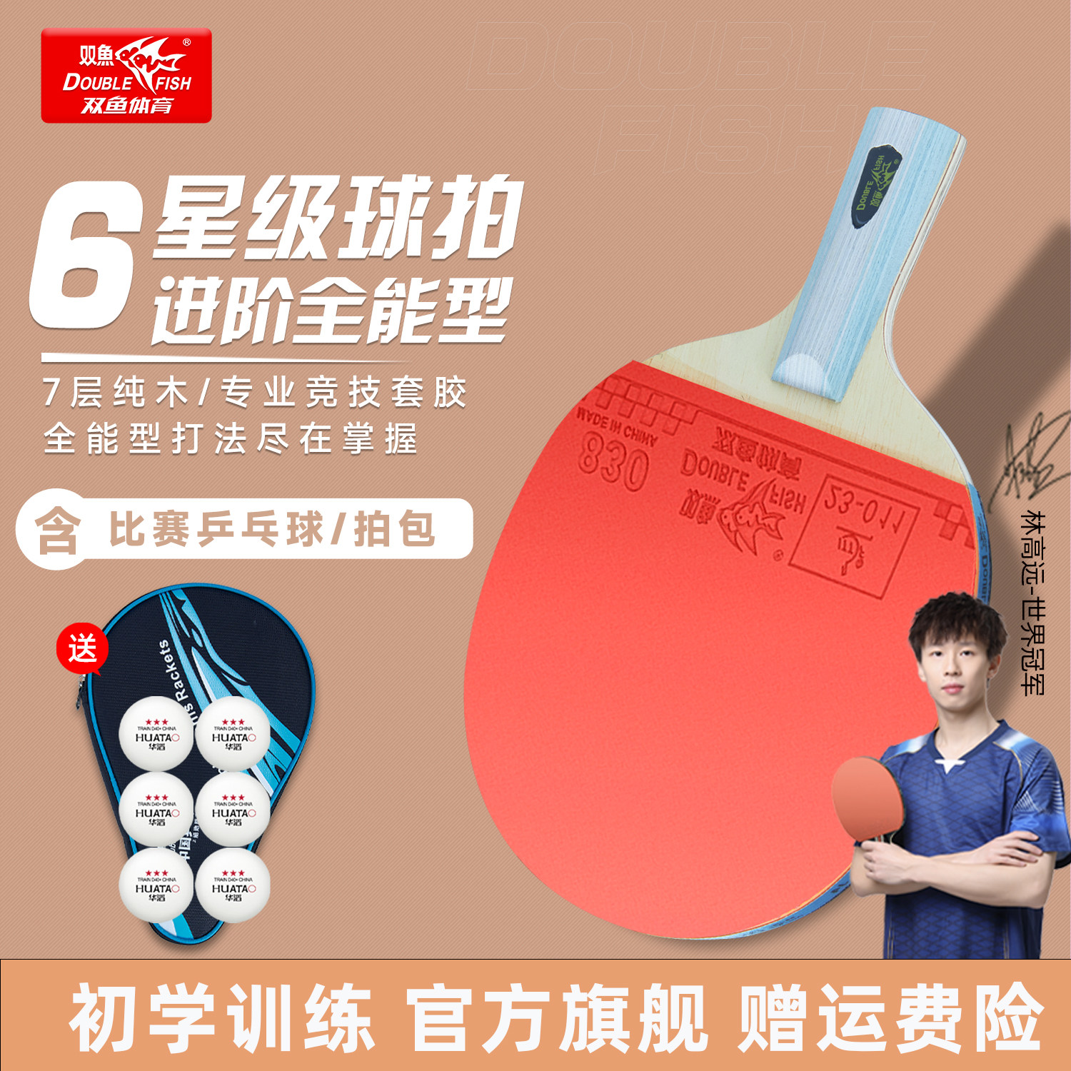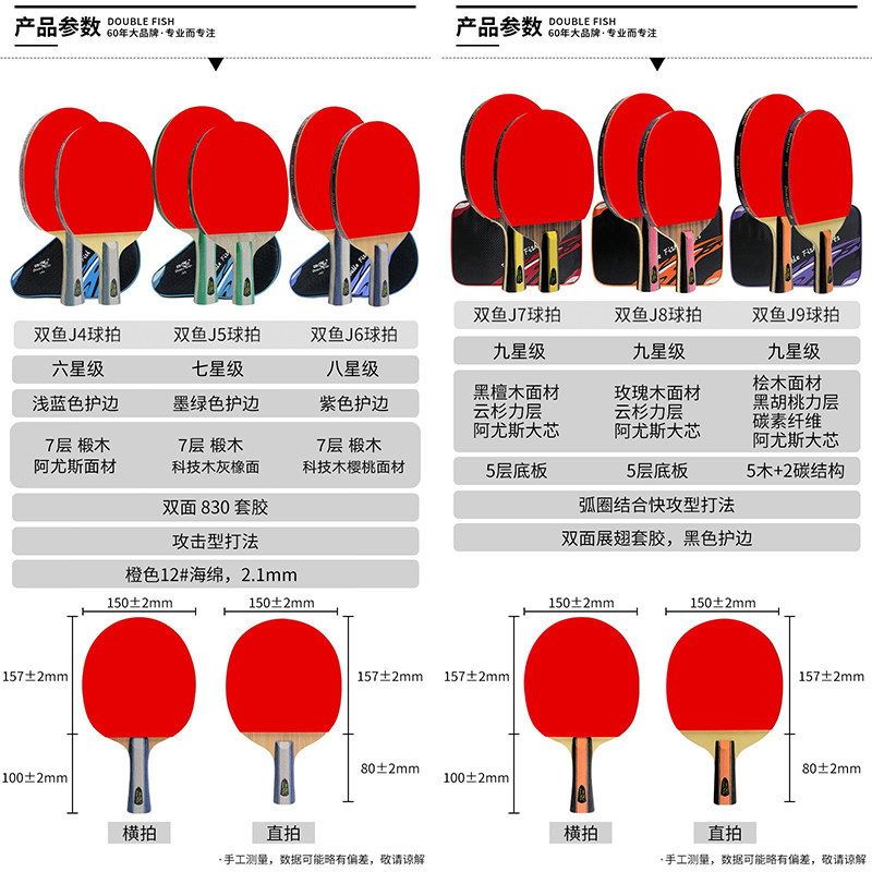 双鱼中考专用乒乓球拍教考训初学者专业级球拍豪华套装高弹力训练