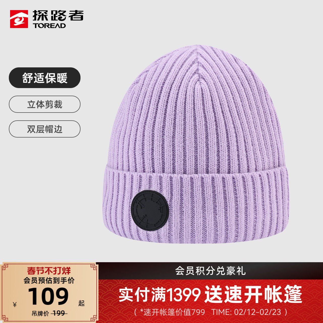 探路者针织抓绒帽加绒保暖毛线帽户外运动徒步登山针织帽子冷帽