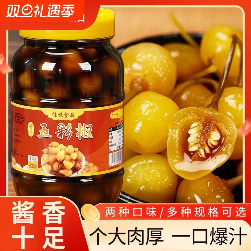广西泡椒五彩泡椒下饭菜七彩灯笼椒酱油腌制辣椒新鲜脆爽大瓶装