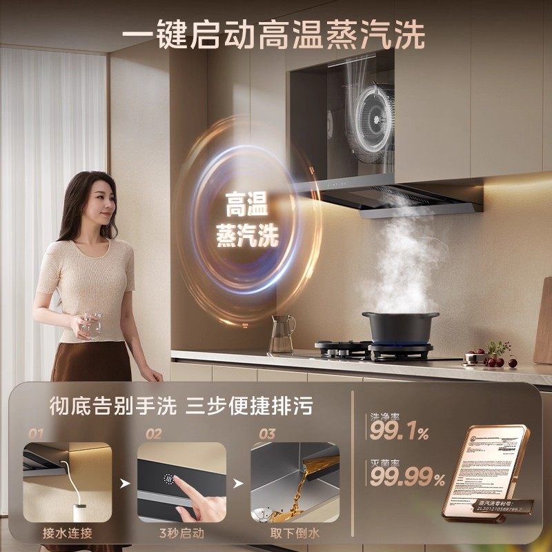 美的抽油烟机蒸汽洗家用欧式顶吸挥手智控油烟机厨房大吸力烟机
