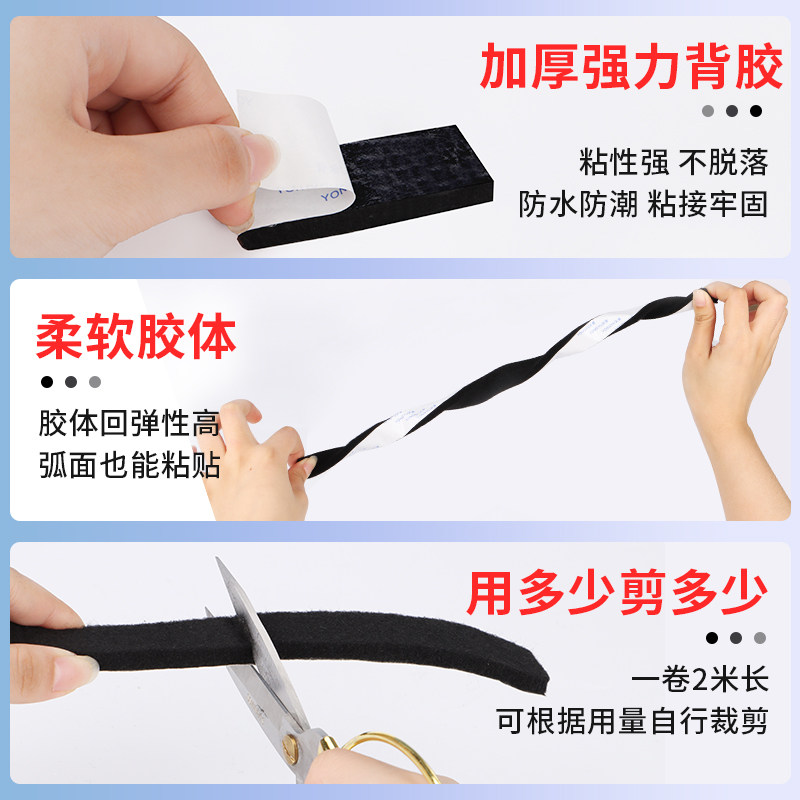 加厚植绒布胶带KTV会议室影剧院降噪隔音条防盗门缝隙推拉窗户密封条家具桌子角保护包边防撞条单面自粘胶带