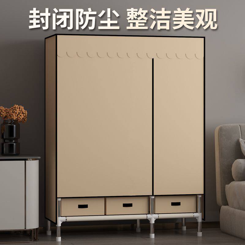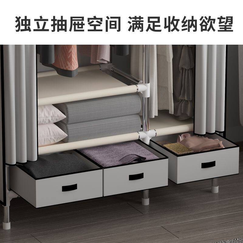 d出租房用布衣柜单人小号简易衣柜带抽屉挂衣架子钢管加厚卧室房