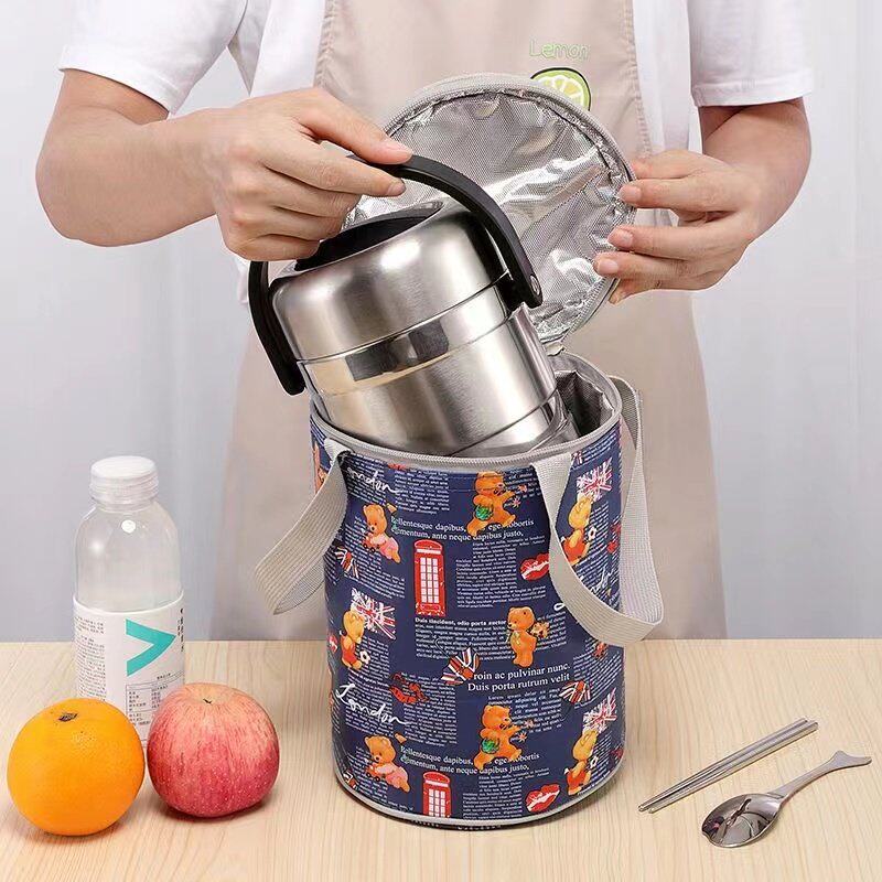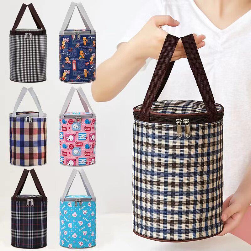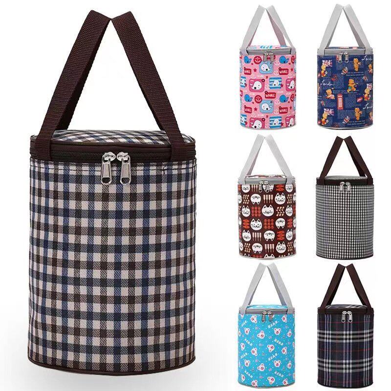 饭袋便当包保温桶袋子学生圆形饭盒袋便当盒饭桶保温袋带饭手提袋