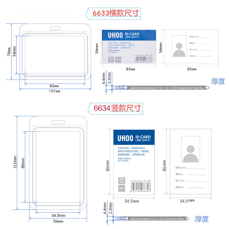 优和证件卡套透明门禁饭卡公交卡身份证胸牌保护套挂绳PP材料