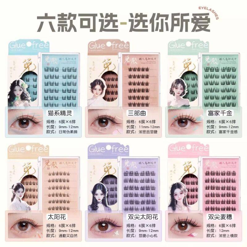 格蒙免胶假睫毛女自然仿真浓密卷翘新手懒人分段式睫毛自粘可重复